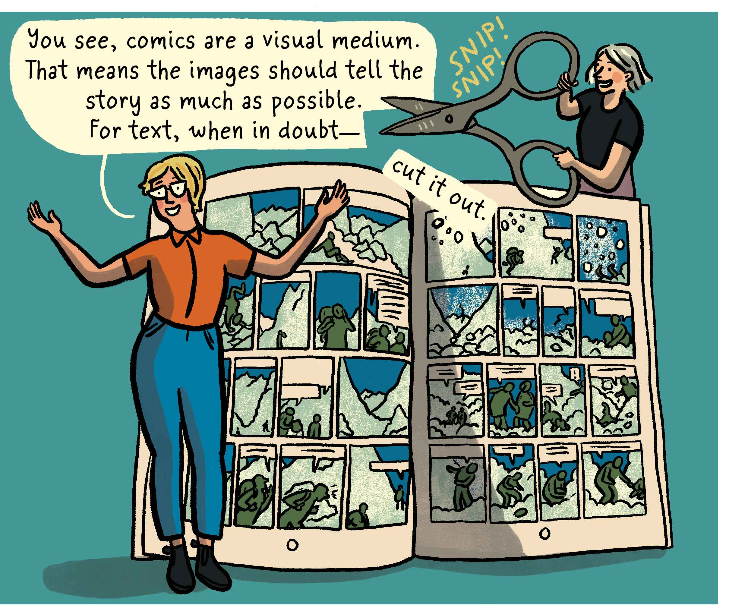 You both come out of years of work at the Nib and other comics journalism outlets. When you sat down to make this book, what did you feel was missing from existing resources like McCloud’s Understanding Comics or Lynda Barry’s Making Comics that you wanted to put on the page for nonfiction creators specifically?